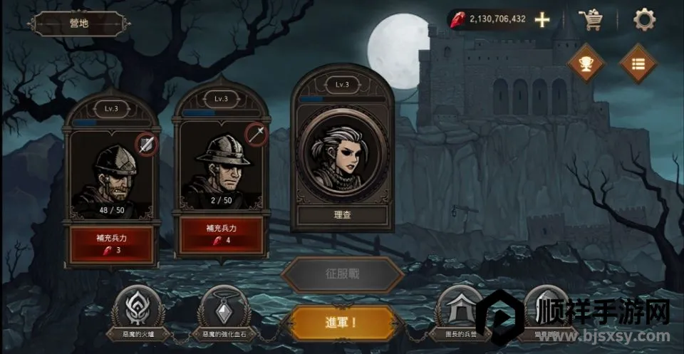 血石附魔改造系统:击败敌人提取附魔血石,可改造士兵或强化装备词条,让技能产生质变。资源需精打细算,优先附魔核心兵种可形成滚雪球优势。