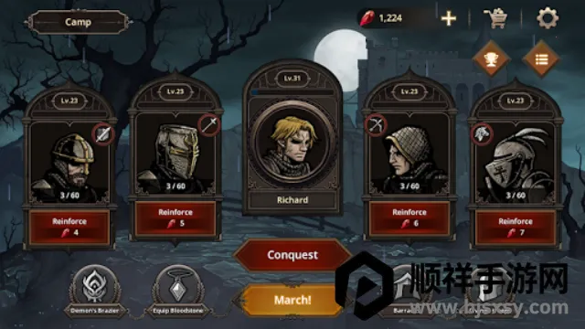 国王之血防御2026最新版本是一款中世纪暗黑风卡牌策略塔防手游。玩家可自由构筑士兵小队,利用兵种相克战斗,还有随机行动卡牌定策略,更有英雄故事、血石附魔等丰富玩法。