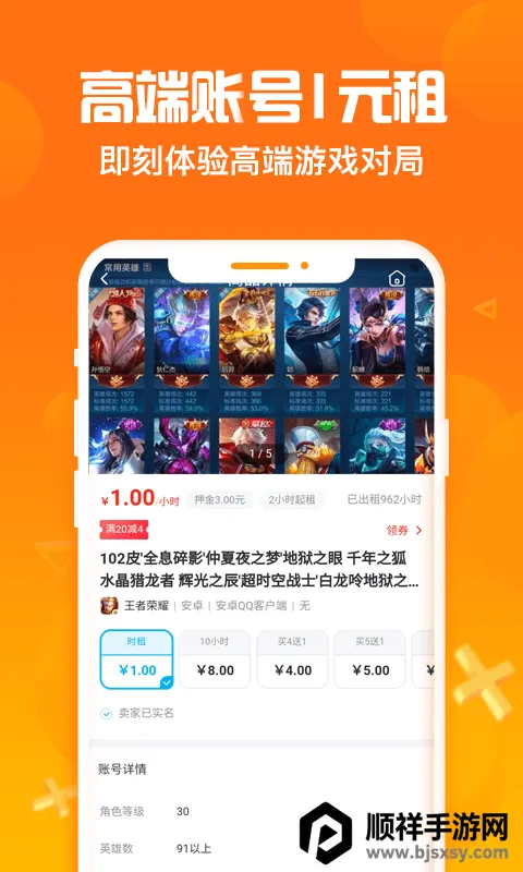4. 收益模式灵活:号主全年大部分时间都在出租中,租得快;租客能以低廉价格租到高端账号,如百万高端帐号低至0.1元起租,还有满减优惠等,可开心体验各类账号。