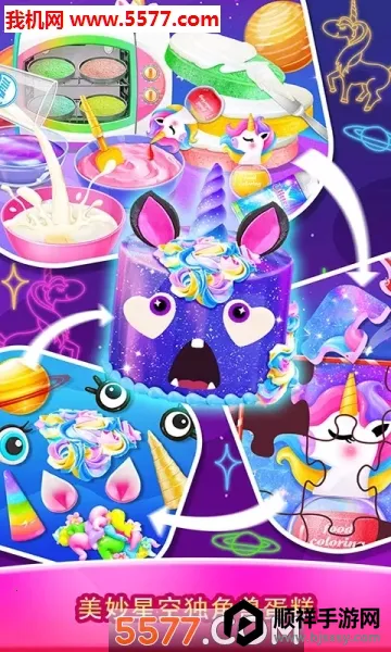 4. 工具多样创意多:大量各不相同的工具,能协助玩家更快地制作出多种造型的独角兽主题蛋糕,还能自由调配色彩与奶油装饰蛋糕,画面采用活泼卡通风格,生动有趣,各种美食制作方法充满创意,等待你亲自探索体验。
