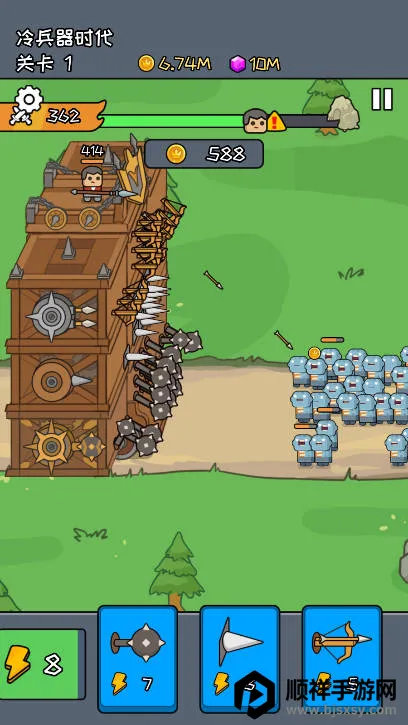 2. 近身作战与远程防御有多种武器和单位可供选择。