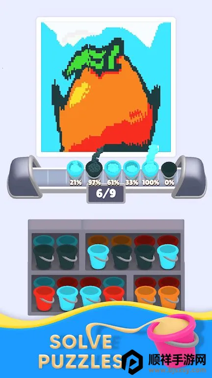 1. 独特玩法:选择正确颜色的桶收集匹配沙子,逐关完成沙画,每关都是全新谜题。