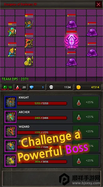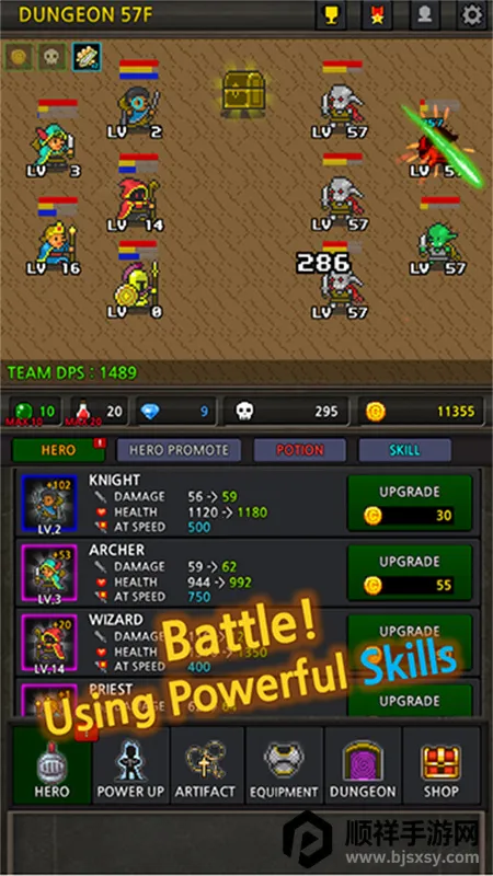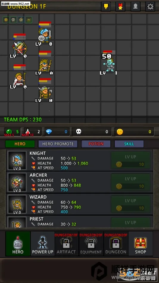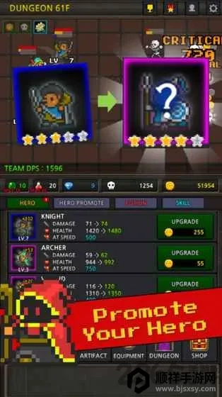 1. 与像素勇士并肩作战,追捕地下城怪物收集黄金,强化武器装备。