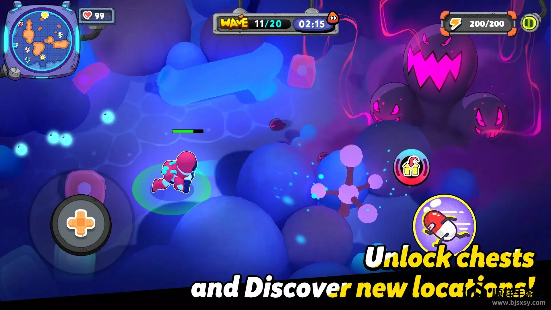 1. 独特微观视角:可缩小到微观尺寸,以前所未有的方式探索人体,感受独特战斗体验。
