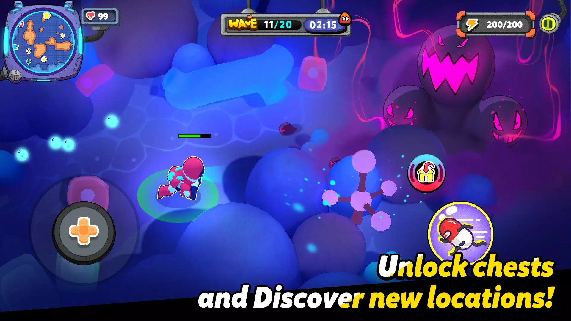 纳米英雄最新手机版是一款融合塔防与医疗概念的休闲游戏。玩家化身精英微型博士M-D缩小至微观尺寸,在人体各部位对抗感染病毒,放置塔防、升级工具、解锁关卡,还有多种武器道具,玩法独特,乐趣十足。