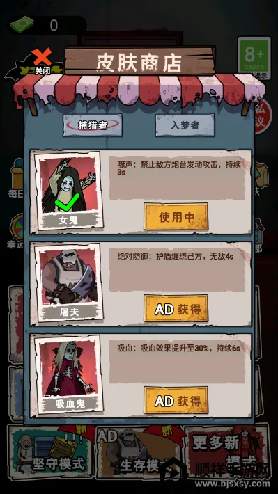 《猛鬼来袭》是一款超刺激的策略塔防游戏。在游戏里,有预言家、猎人等特色角色。预言家能提前洞悉猛鬼动向,助你提前布局防御;猎人则可凭借强大能力,在关键时刻给予猛鬼致命一击。游戏玩法丰富,进入游戏后,点击开始、准备,等人齐后找房间躺下,拖动武器到方格,不断刷新获取更好武器。波数完成还能选技能,觉得门不结实可提升等级。攻略方面,优先升级床获取金币,合理布局防御设施,中后期联合队友击杀猛鬼。游戏特色十足,恐怖氛围拉满,多样地图场景带来全新体验,还有单人闯关、多人竞技等丰富玩法模式。它能满足你体验紧张刺激战斗、运用策略抵御猛鬼的需求,让你在充满危机与挑战的宿舍环境中,享受智斗猛鬼、守护安全的乐趣,快来试试吧!