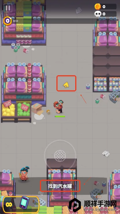 第一步,找到汽水罐,玩家需要跟着黄色箭头走