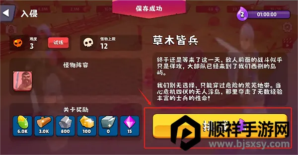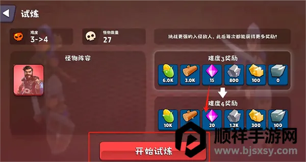 点击入侵之后,可以看到右上角有一个试炼按钮。点击试炼,会升级难度,增加敌人数量及战力。但是后续可以获取更多的紫宝石哦!