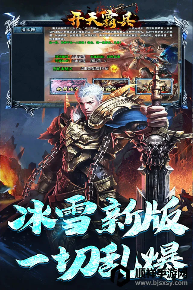 开天霸兵是全新高福利沉默专属神器版本传奇,上线送自动回收等,1:1000充值比例,福利多。有超划算成长计划,经典地图,海量活动。多元组队、PK无限制,节假日有专属福利,还有多种礼包领取方式。