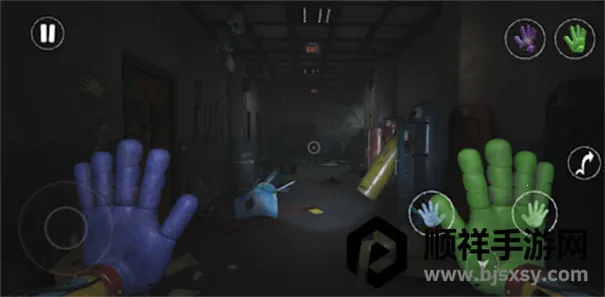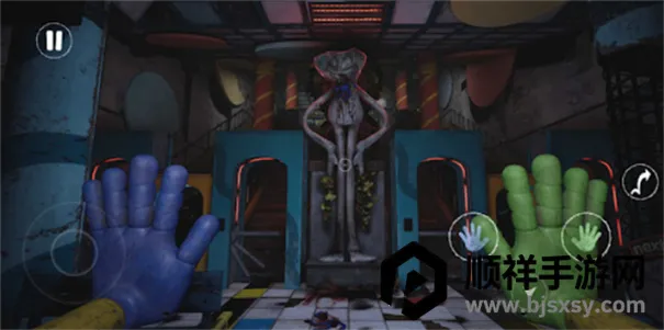 6、进入电力室:拿着新获得的钥匙,玩家需要解锁电力室的门,并用蓝色手手拉动连电器开关。在此过程中,玩家需要绕过两根柱子确保电路通电。
