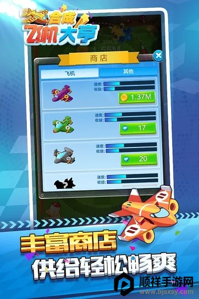 1. 资源获取渠道多样,能在商店解锁各类必需资源,利用简便操作完成资源积累与飞机合成,开启轻松愉快的合成挑战过程。