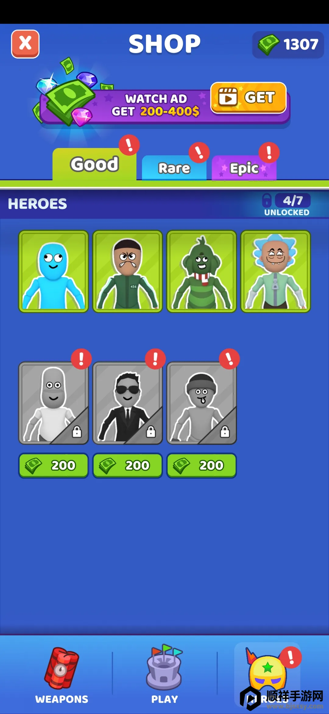 3、可购买升级武器与皮肤:玩家成功消灭对手通关后能获取部分钞票奖励,用于在武器库购买升级武器,提升攻击力。还可购买解锁火柴人的皮肤,让游戏角色更加有趣,增添游戏的个性化。