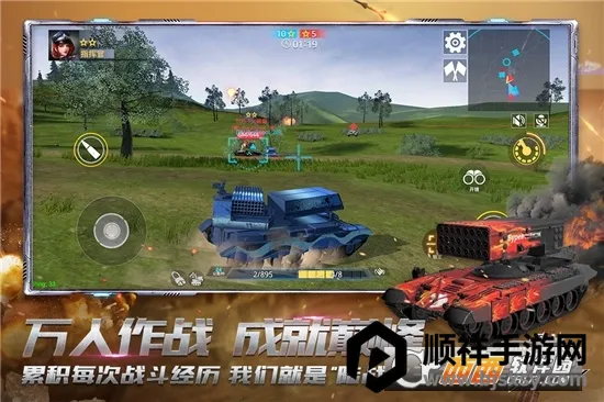 2. 支持最多10人驾驶坦克同时竞技,能展开5V5大规模对战,激烈战役随时开启。