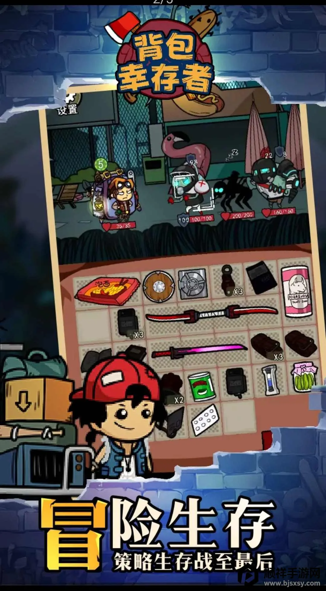 背包幸存者是冒险生存手游,玩家扮演末日幸存者,以背包管理为核心,合理规划空间放置物品、用武器击败敌人。有多种角色、道具,可合成神器,还有叠加效果。含街道和恐怖游乐场模式,快来开启末日冒险。