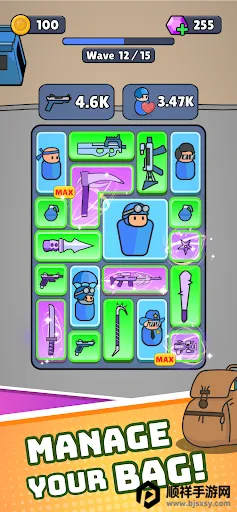 2. 丰富亮点呈现:拥有空间博弈乐趣,49格标准背包衍生上万种布局策略,兼顾输出与生存空间;武器羁绊系统有趣,如步枪兵配狙击枪触发远程点杀等;减压观战体验好,极简战斗动画搭配音效,享受运筹帷幄的感觉。